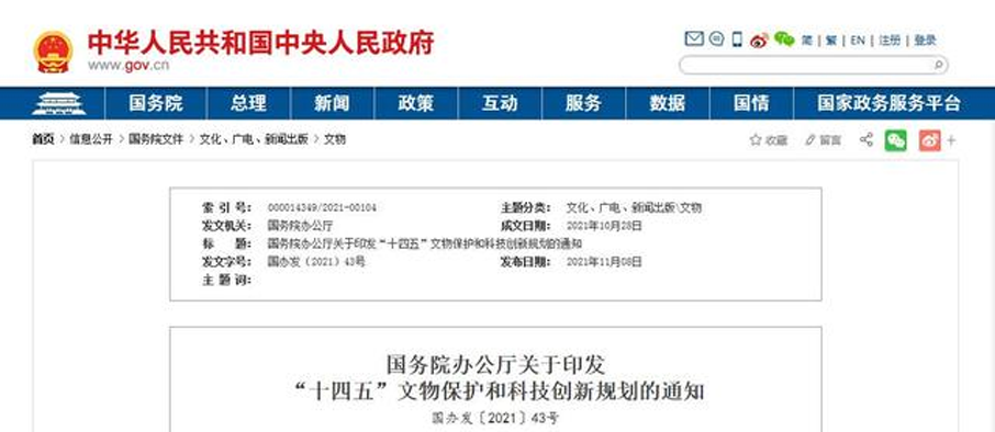 国办印发《“十四五”文物保护和科技创新规划》